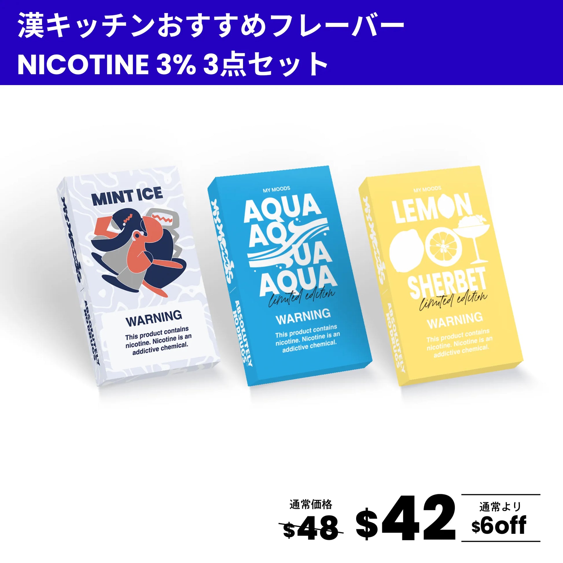 MyMoodsが「Moodを変えるVAPE」をコンセプトに大手香料メーカーと約2年の期間を掛けて開発したニコチン3%POD型VAPEのPODが約$48分が入った漢キッチンおすすめセットとなります。