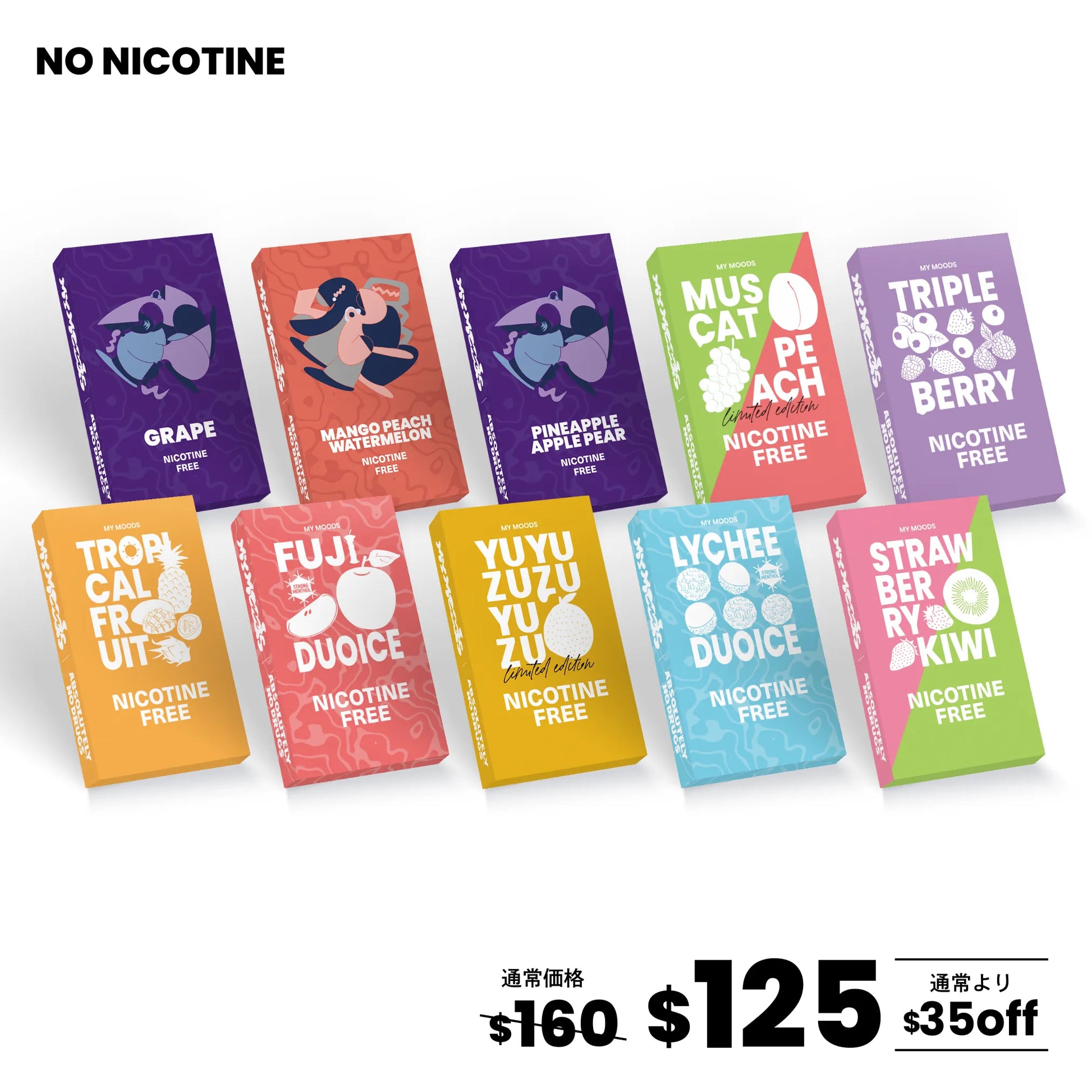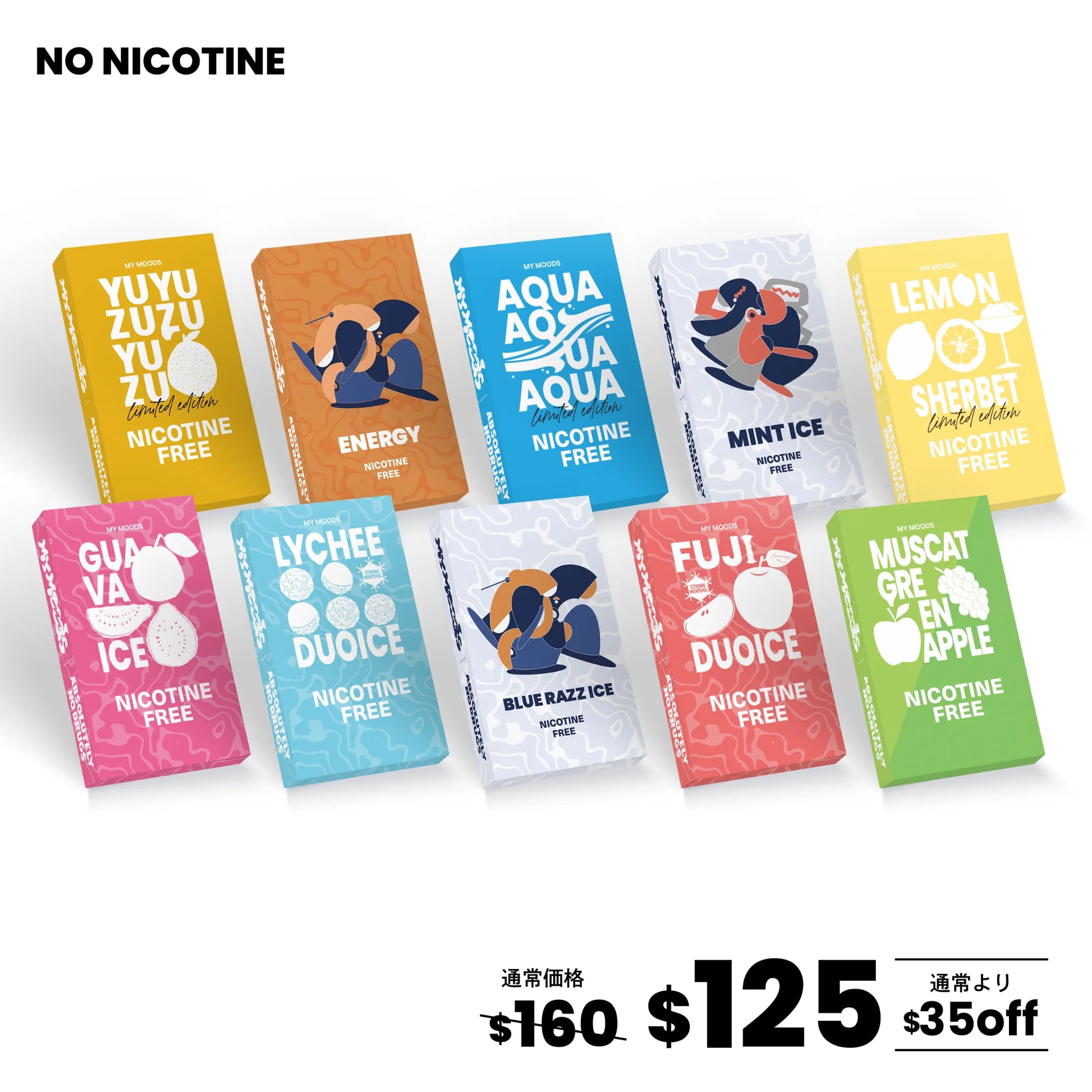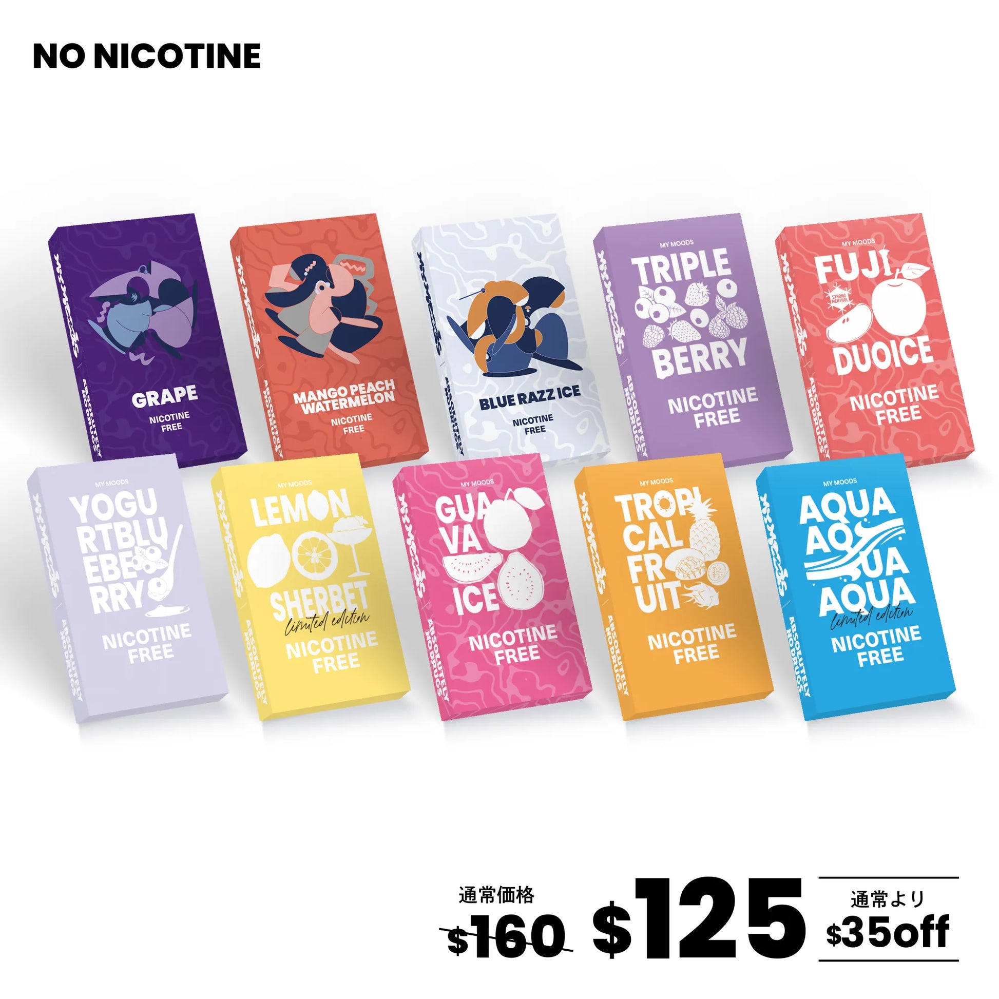 MyMoodsが「Moodを変えるVAPE」をコンセプトに大手香料メーカーと約2年の期間を掛けて開発したPOD型VAPEのノンニコチンPODが約$160分が入ったお得なセットとなります。