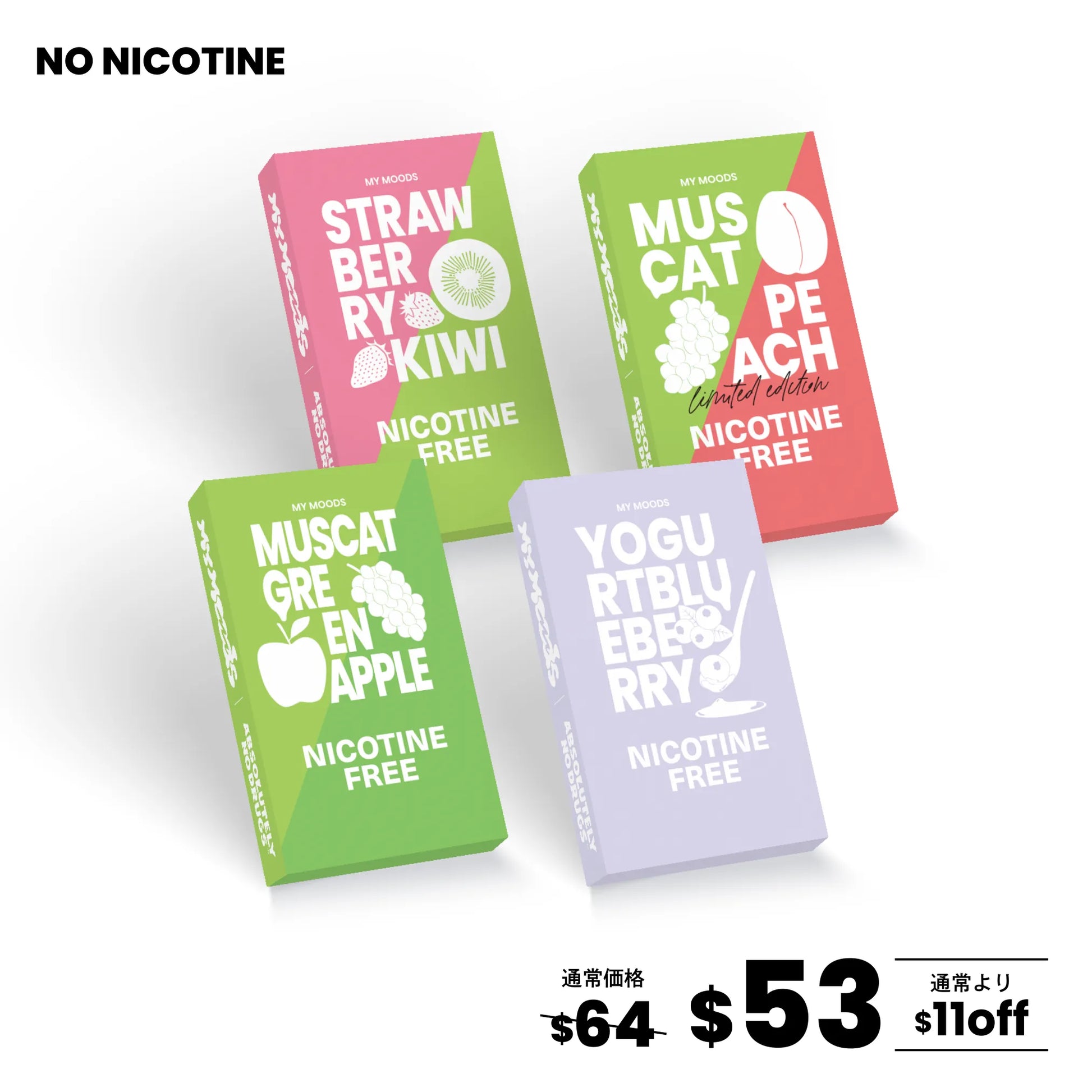 MyMoodsが「Moodを変えるVAPE」をコンセプトに大手香料メーカーと約2年の期間を掛けて開発したニコチン3%POD型VAPEのPODが約$64分が入ったお得なセットとなります。